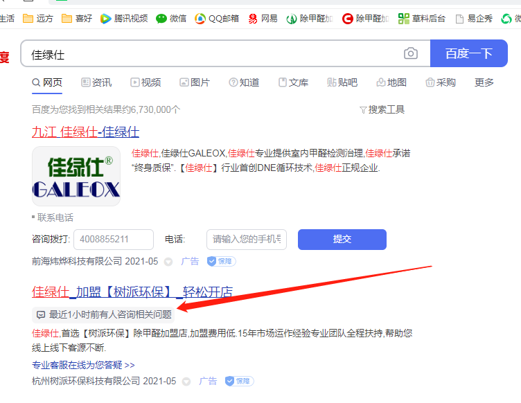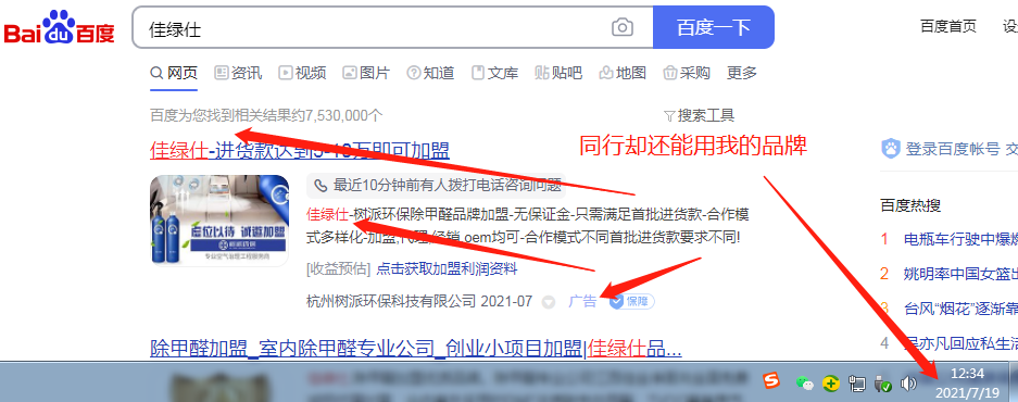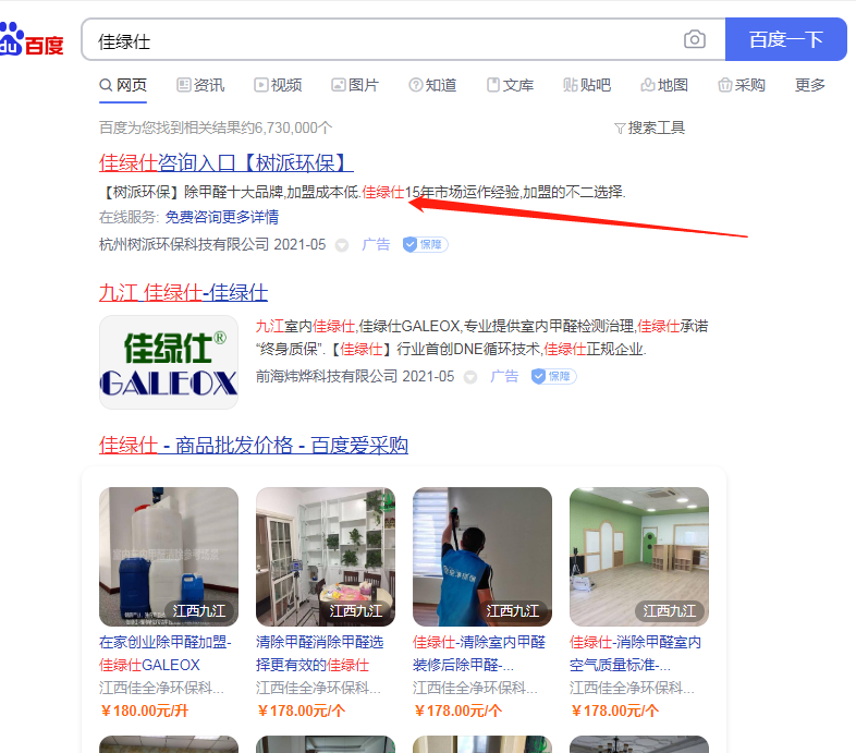 杭州樹派環??萍加邢薰纠梦宜旧虡?佳綠仕"進行百度搜索關鍵詞宣傳,嚴重影響我司合法權益。
